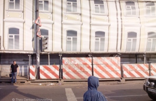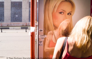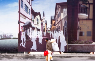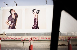That quote opens Derksen’s book, and he takes it as a personal challenge. While traveling through 50 cities across Africa, Asia, Europe, and the US, Derksen plunked his full-frame camera before walls and fences dressed up with fashion models, urban development schemes, and tourist destinations. But his focus wasn’t so much the giant idealized imagery as the local context—a ladder propped on a wall, a worker passing by, an ugly graffiti scrawl.