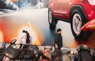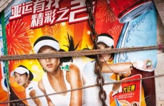 The book depicts the myriad glitzy, ginormous ads obscuring public spaces around the world. Derksen began shooting it in 2003, after noticing how such imagery was increasingly being blown up huge and plastered everywhere from shopping avenues to construction sites, particularly in cities like Beijing and Tokyo.