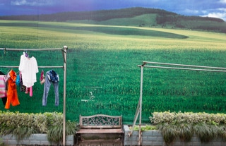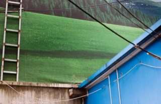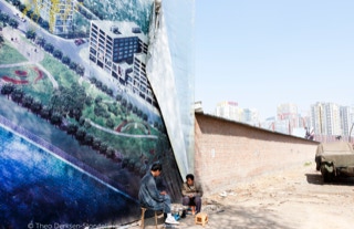 That quote opens Derksen’s book, and he takes it as a personal challenge. While traveling through 50 cities across Africa, Asia, Europe, and the US, Derksen plunked his full-frame camera before walls and fences dressed up with fashion models, urban development schemes, and tourist destinations. But his focus wasn’t so much the giant idealized imagery as the local context—a ladder propped on a wall, a worker passing by, an ugly graffiti scrawl.