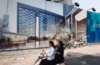 The book depicts the myriad glitzy, ginormous ads obscuring public spaces around the world. Derksen began shooting it in 2003, after noticing how such imagery was increasingly being blown up huge and plastered everywhere from shopping avenues to construction sites, particularly in cities like Beijing and Tokyo.